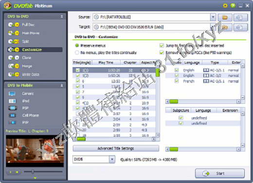 4. Split: Copy a DVD-9 onto two DVD-5 discs with 100% quality, and preserve