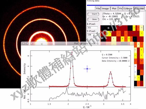 探測資料分析,特別適合於分析粉狀衍射資料,聚合體或液晶散射,膠體、聚合體、